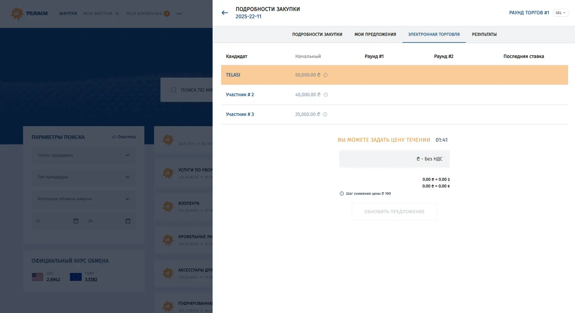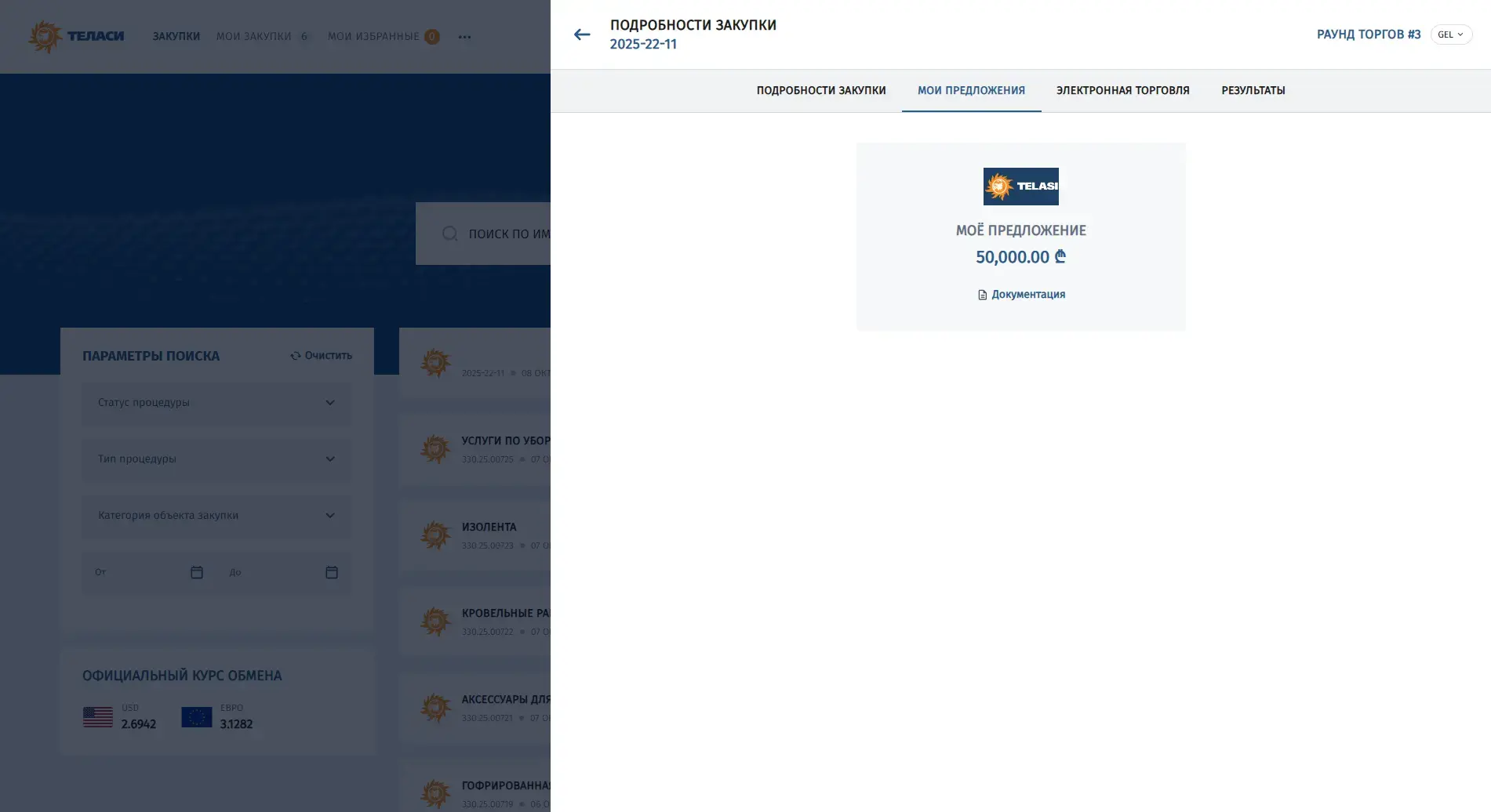 Система электронных закупок АО «Теласи» (далее – Система) является онлайн платформой, посредством которой АО «Теласи» осуществляет полный цикл закупки товаров, работ и услуг. Система обеспечивает прозрачность, сокращает риски коррупции и является комфортной директорией для участия в регламентированных закупках.